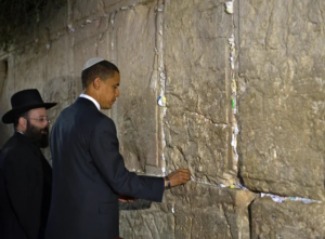 Remember how the right fought over Obama’s birth certificate? How we called him a radical Muslim? The radical Muslim stood at the wailing wall and bowed. Most of his mentors were Jewish. He hosted Passover Seders while in office.